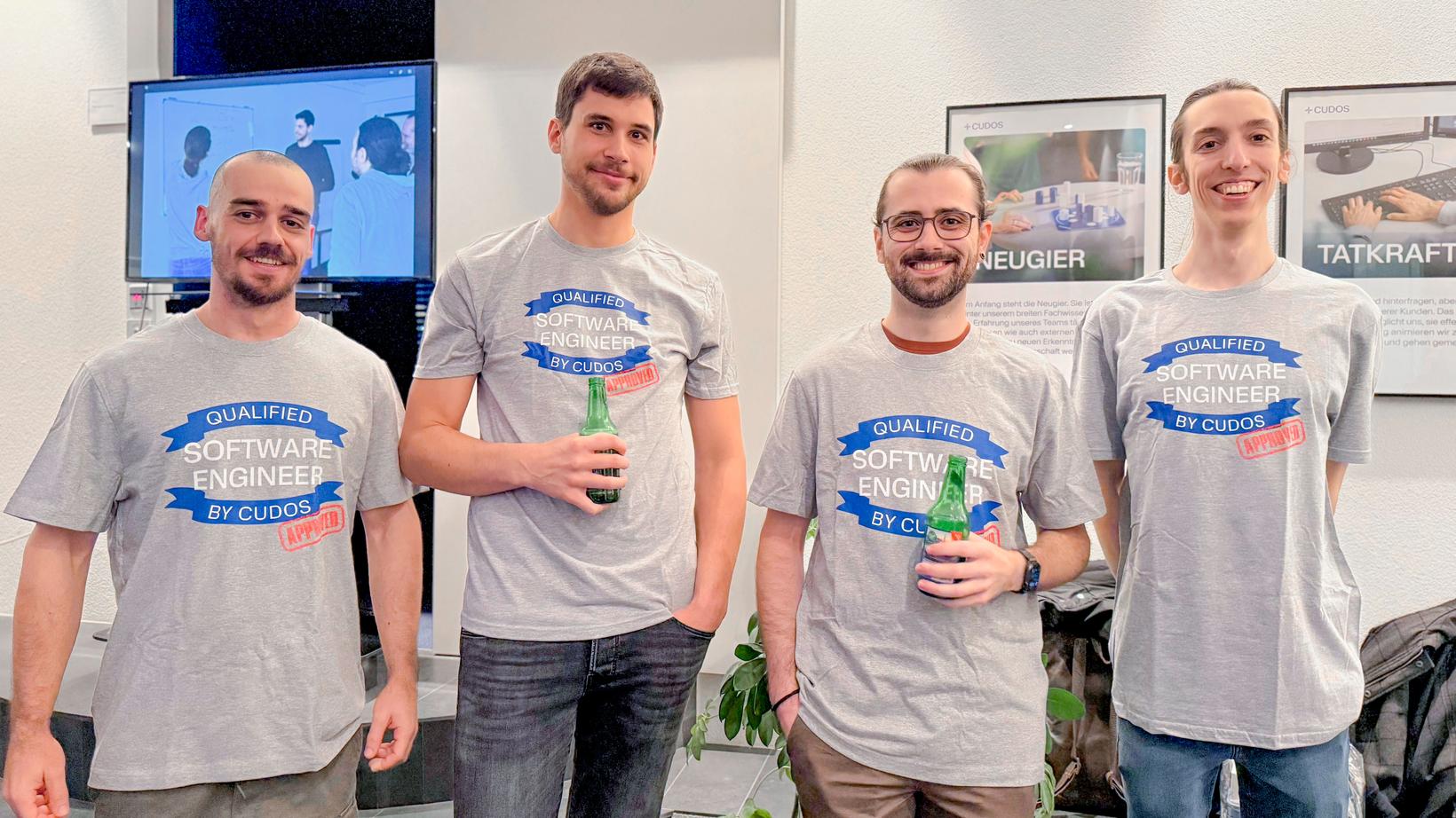 Stefan, Marco, Simon und Mirek haben den Cudos Trail erfolgreich gemeistert. Nun verstärken sie die Software Teams von vier unserer Partnerfirmen.