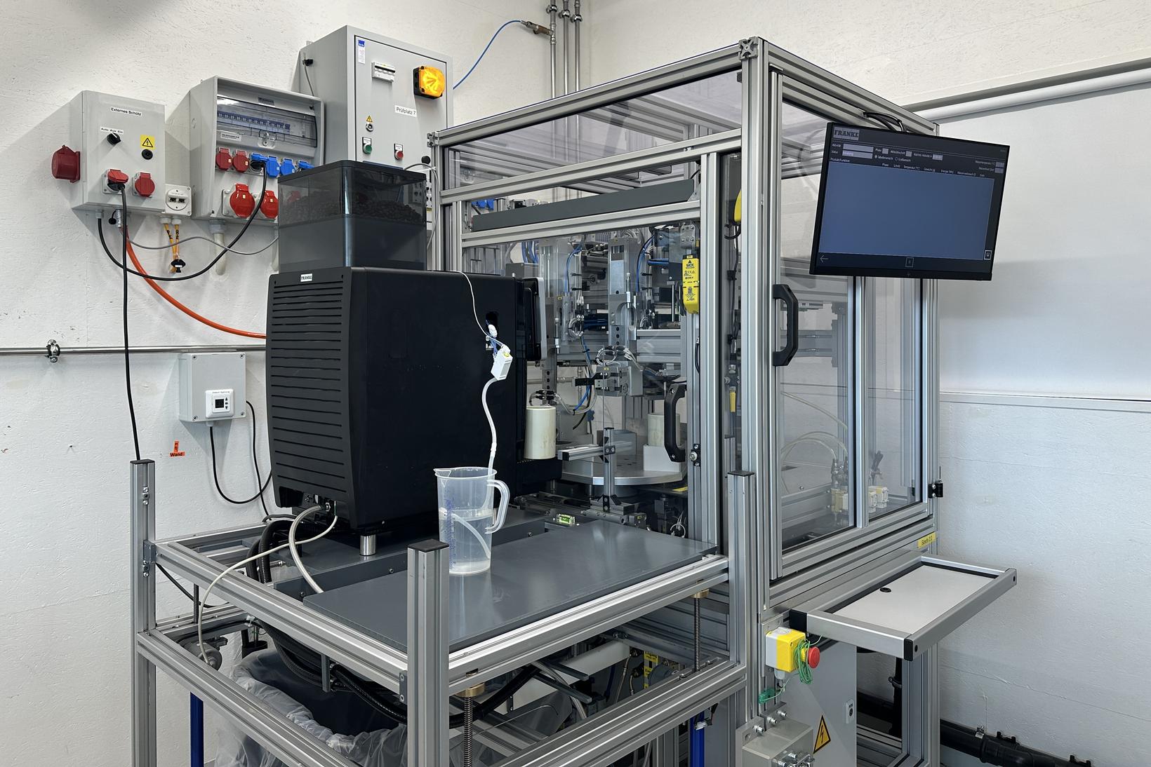 Wir konzipierten und realisierten einen hochautomatisierten Prüfautomaten, der die Durchführung von mehrtägigen Langzeittests ermöglicht. Das System ist für verschiedene Kaffeemaschinenmodelle ausgelegt und gewährleistet dank einer automatischen Becherzuführung einen unterbrechungsfreien Dauerbetrieb.